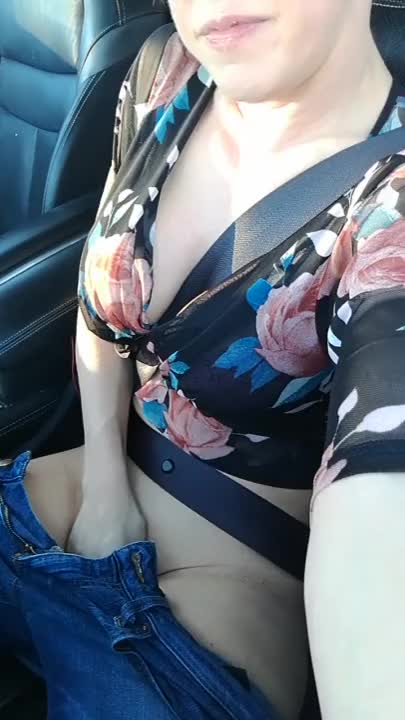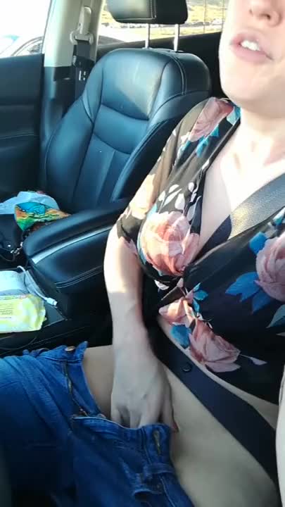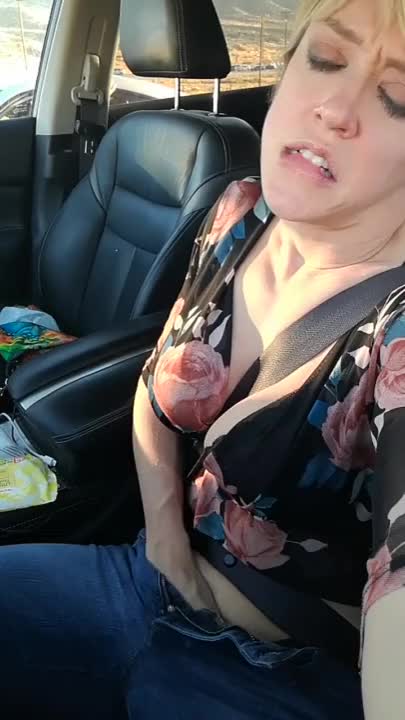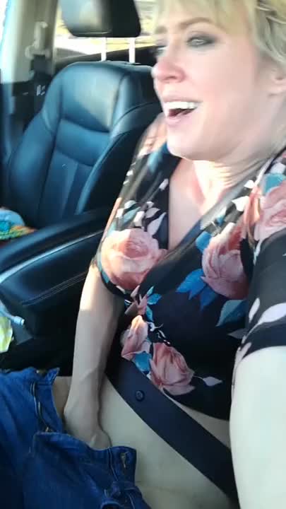 Naughty milf Dee rubbing her pussy and having an orgasm in her car.