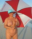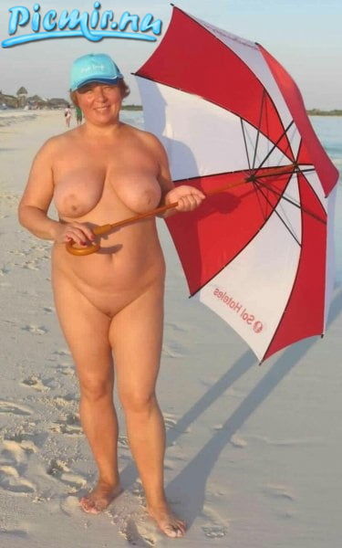 Женщина с зонтиком и без зажигает на море