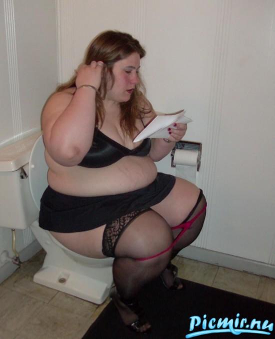 Толстая деваха верхом на унитазе. Не очень симпатичная, но фактурная. Люблю такие объемы.