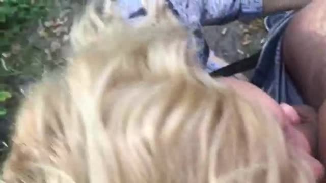 Блондинка отсасывает ствол на природе