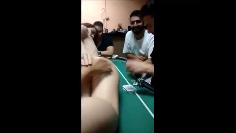 Мужики начали играть в покер на теле обнаженной красотки, и не могут сдержать руки!! На покерном столе девушка парня, который снимает видео! Она вначале пробует отбиваться от мацаний(лишь отшлепав саму себя), но в итоге сдается... Парни ведут себя культурно, все-таки девушка друга!!
