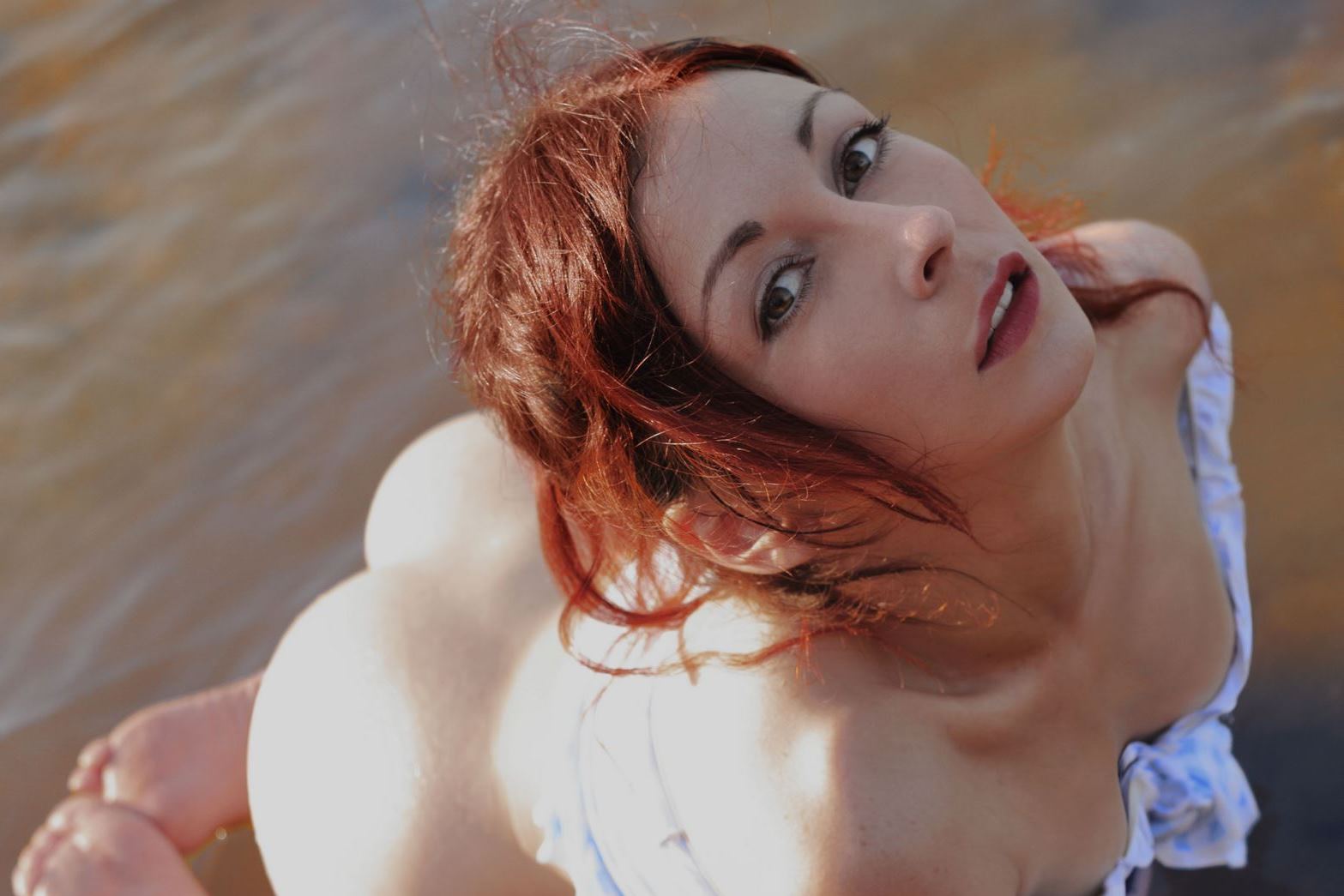 Хороша пиздёнка у русской порно модели на речке позирующей!