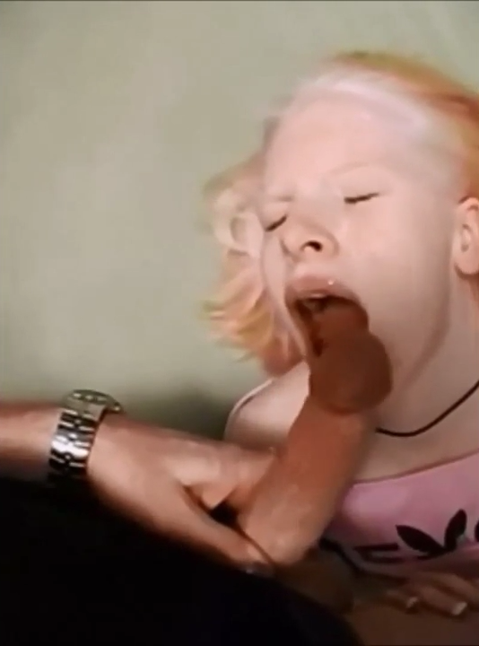 Девушка со специфической внешностью сосёт и получает сперму в рот и на лицо.