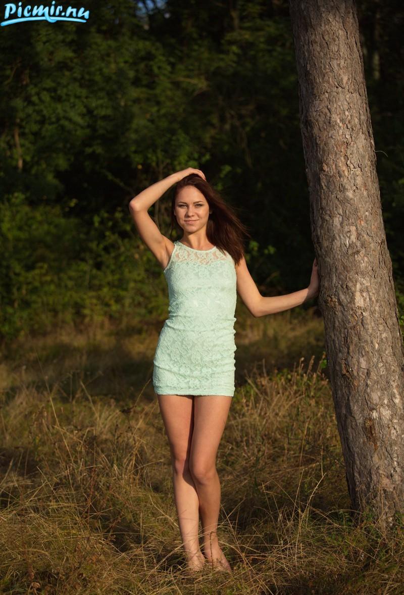 Девочка с красивым телом позирует в лесу. Незнай какая она в сексе,но выглядит отлично