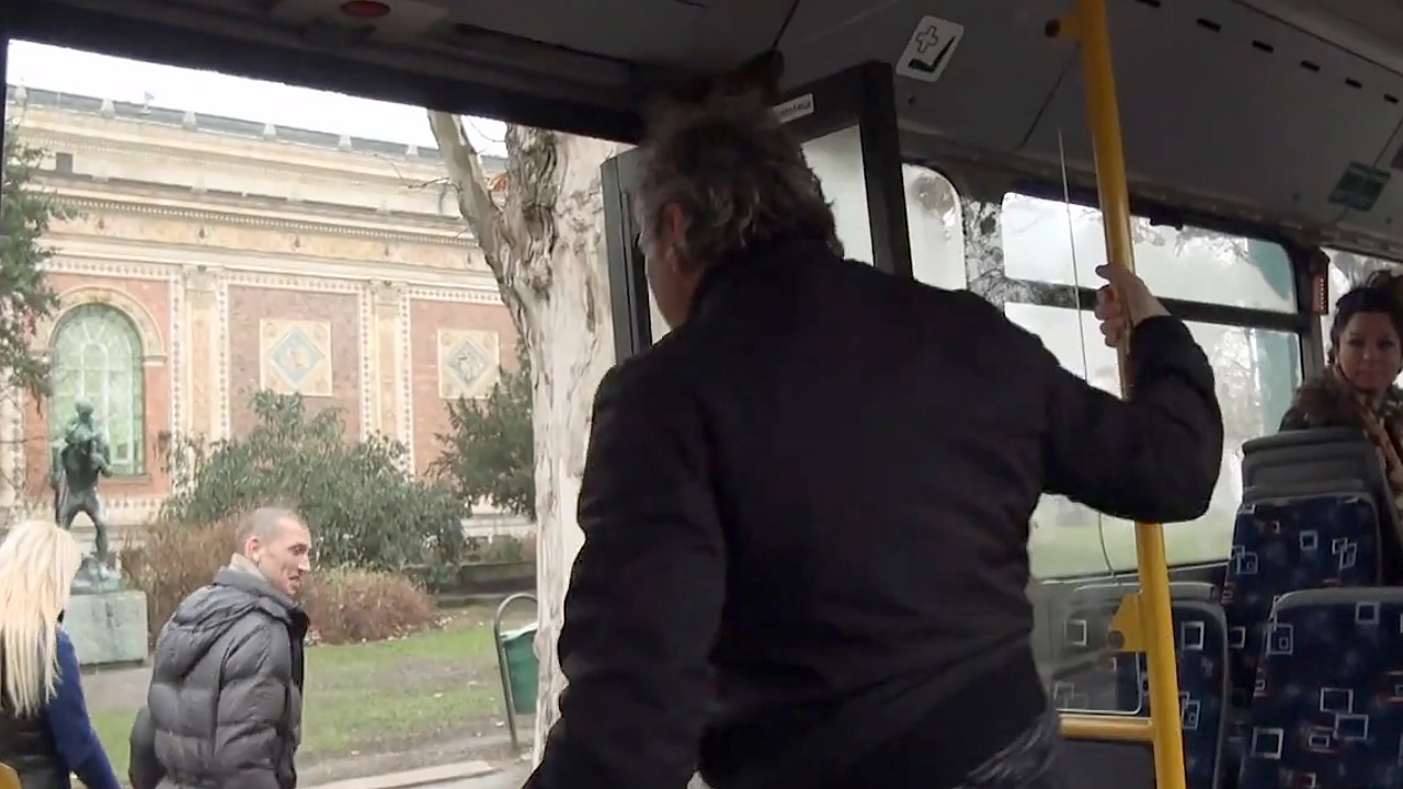 Молодой паре очень хотелось потрахаться и они не стали зря терять время и занялись сексом в автобусе,несмотря на публику,девушка сделала минет парню,а он полизал ей ее сладкую киску,хорошенько трахнул красивую девушку и кончил ей в ротик.