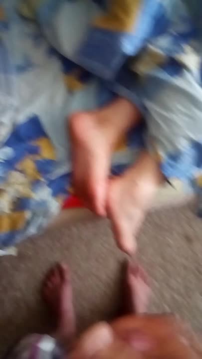 Пока жена спит дрочу и кончаю на её ступни...