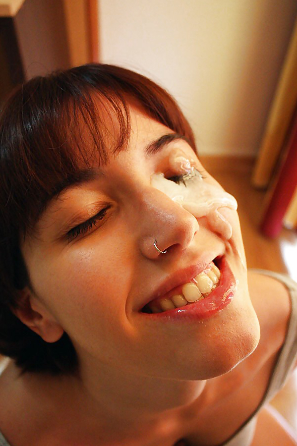 Красиво она подставила личико под его сперму!