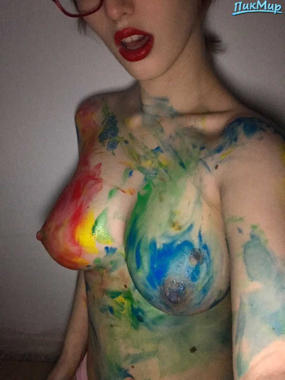Было время, когда элитарность породистых собак определяли по количеству родинок на их мордах. Судя по количеству родинок на теле девушки, можно предположить, что заявка на элитарность ею сделана, по крайней мере замечательной грудью, чего нельзя сказать об интерьере.