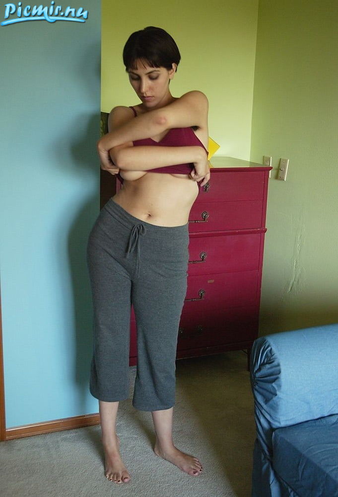 Молоденькая девушка разделась и показала свой пушистики не бритые подмышки