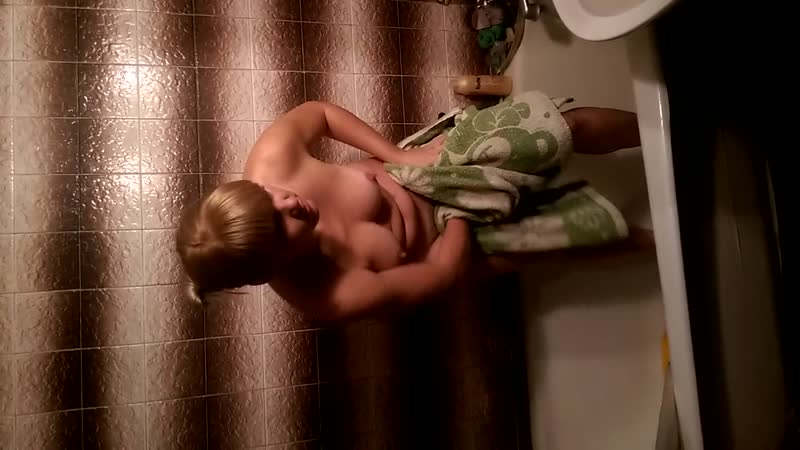 голая Русская девушка вытирается после того как помылась