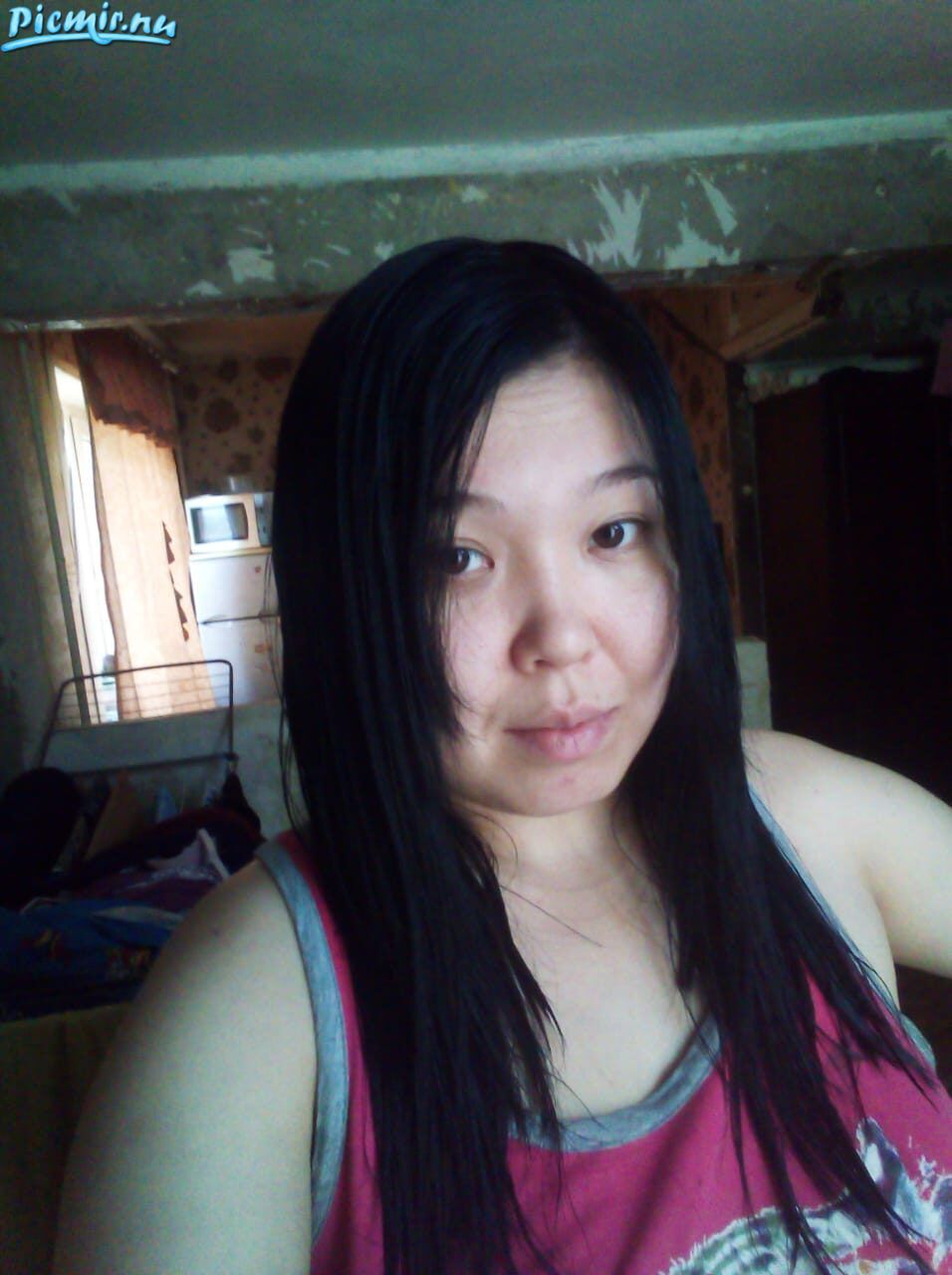 Хорошенькая девушка с востока. Стесняется полноты, раз сверху себя фоткает