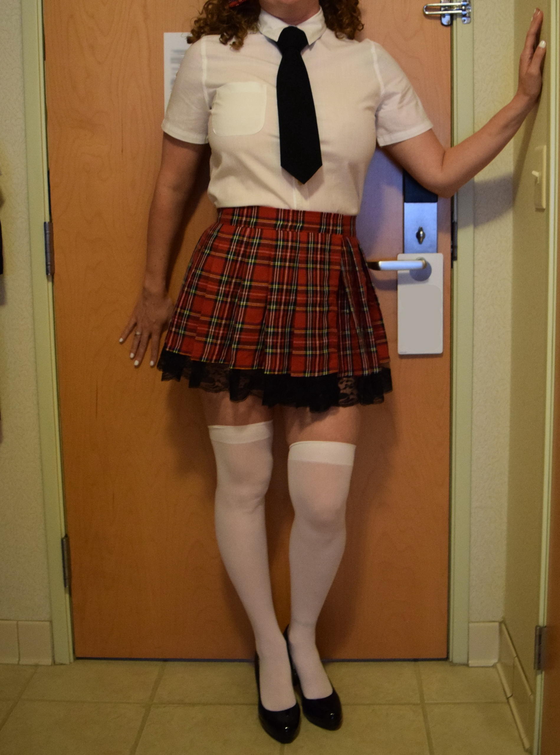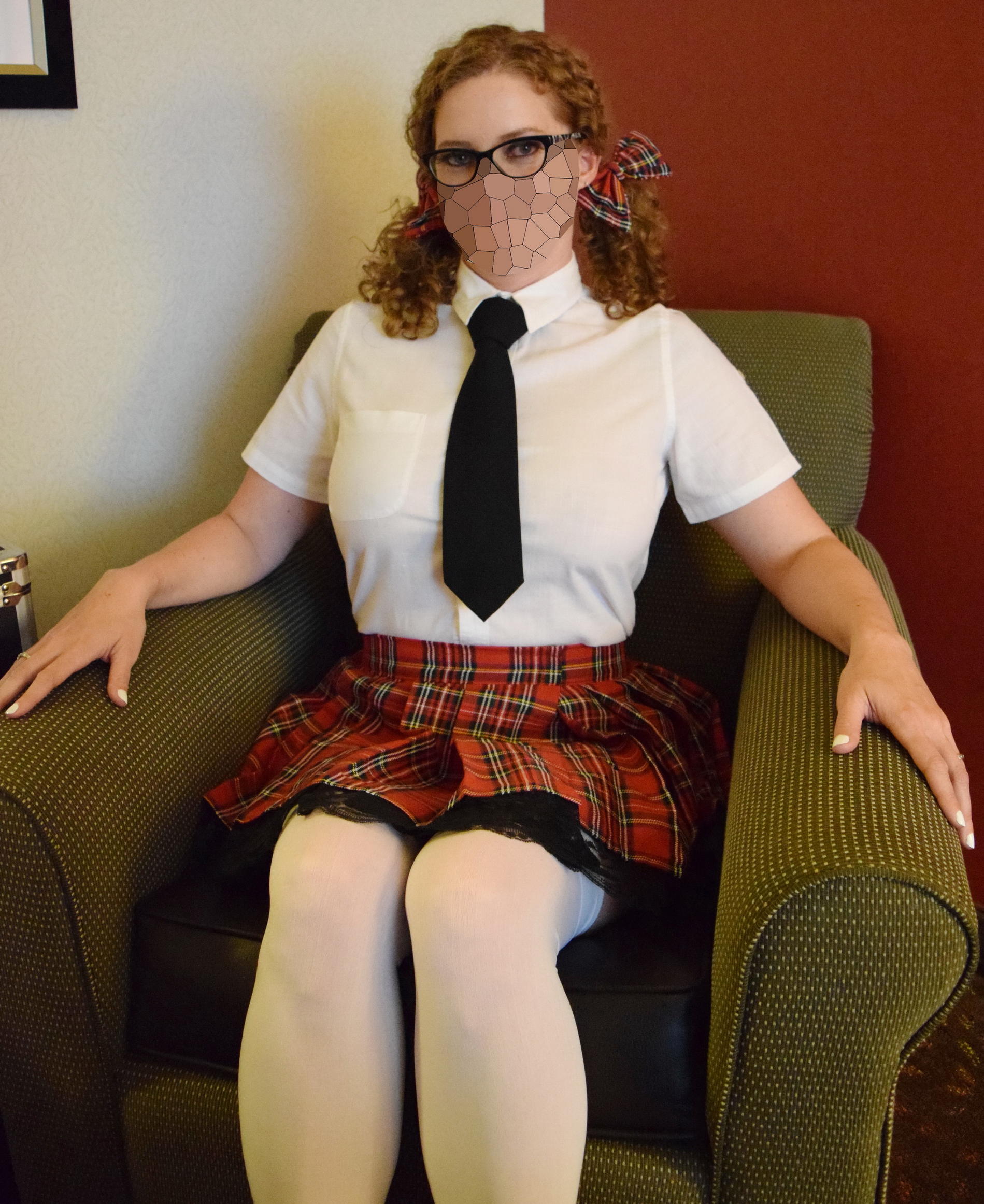 позирует в наряде школьнице демонстрируя свою пиздёнку