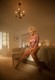 Блондинка Николь на высоких каблуках снимает кофточку и трусики