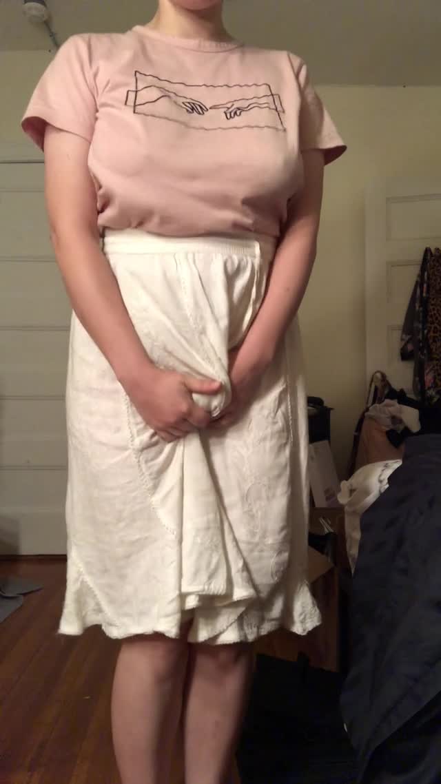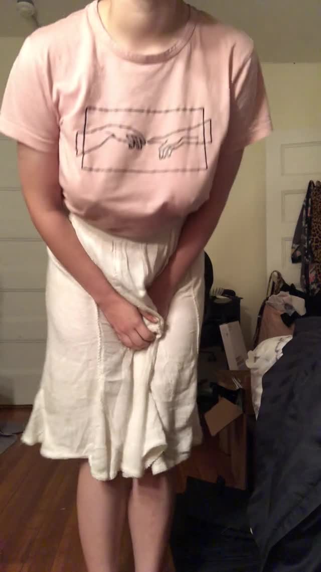 Одетая в обычную домашнюю юбку и футболку очень красиво показала девушка себя.