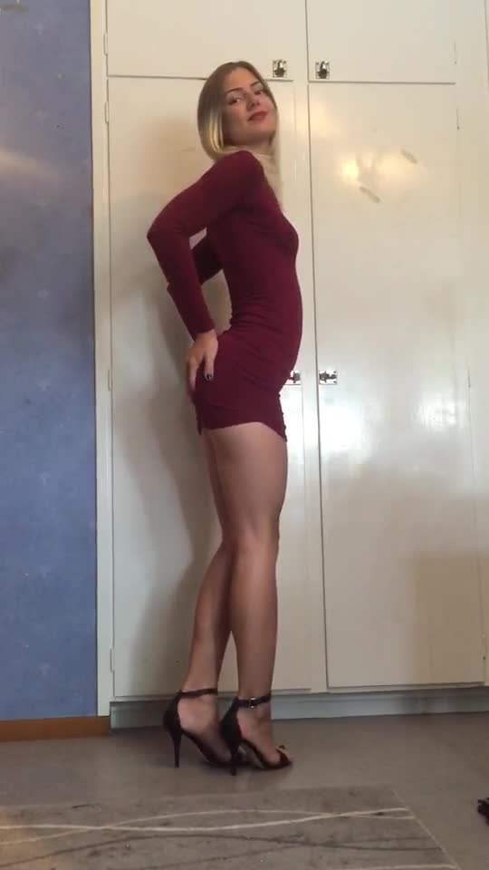 позирует перед камерой снимая с себя платье и обнажая своё молодое нежное тело