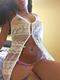 Интересный контраст, белый халатик, смуглое тело.