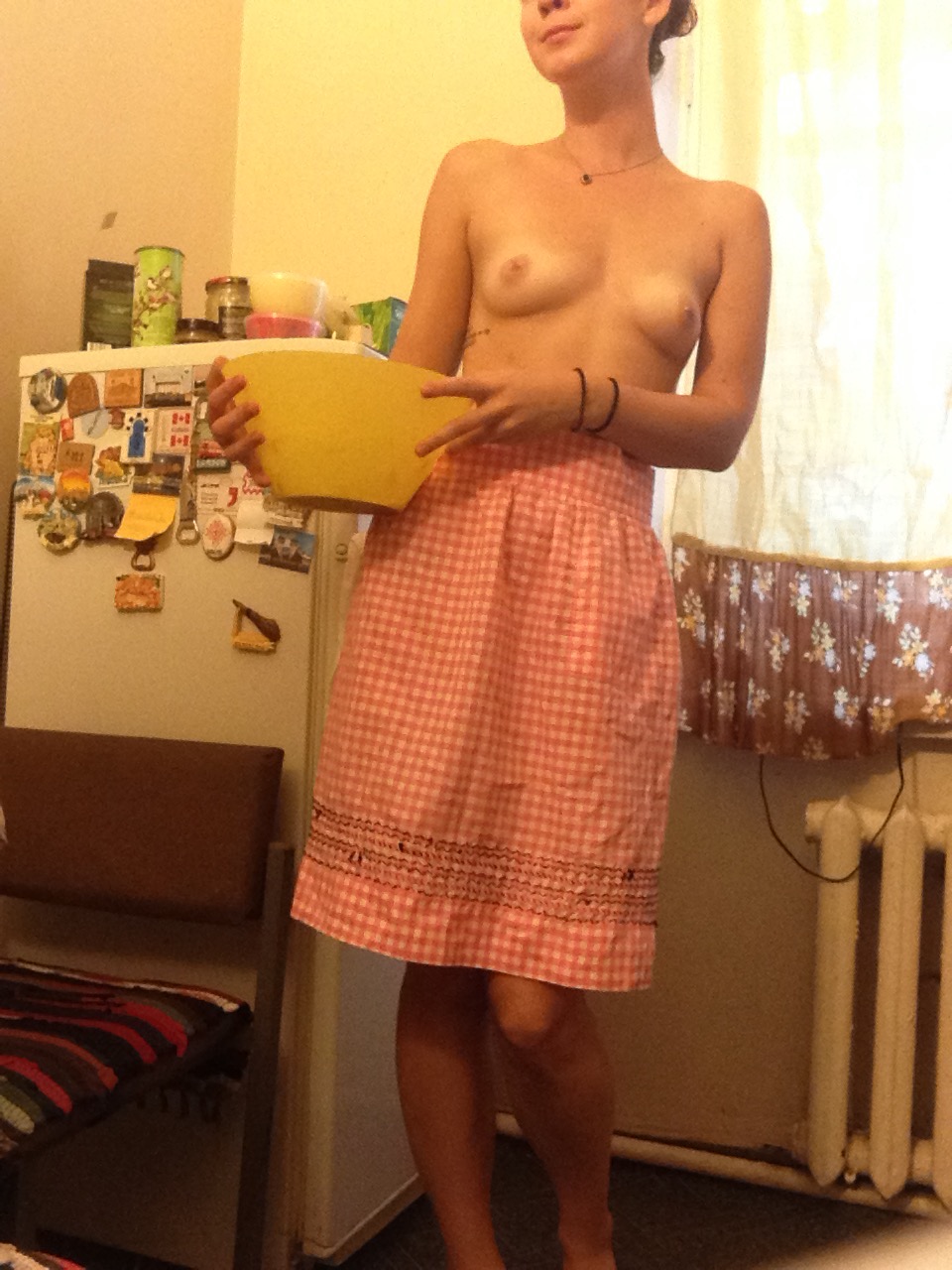 девушка хозяйничает на кухне, и эротично раздевается у себя в комнате демонстрирует свою стройную фигурку