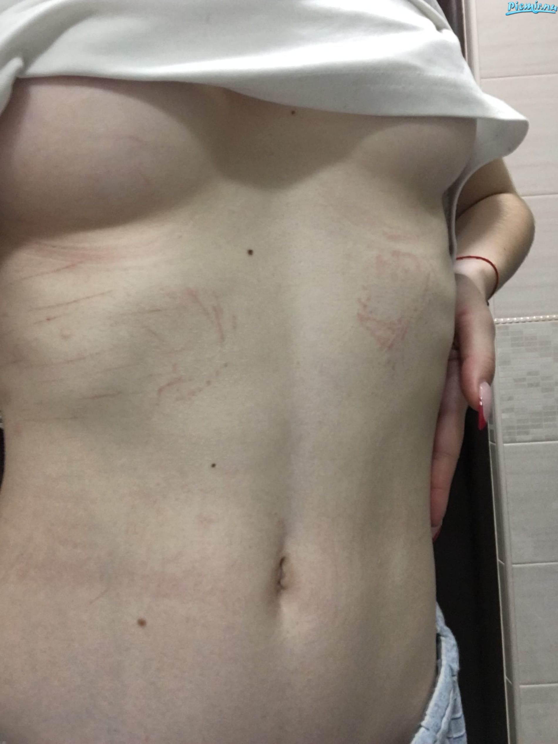 Откуда у неё столько следов от мелких порезов на грудной клетке?