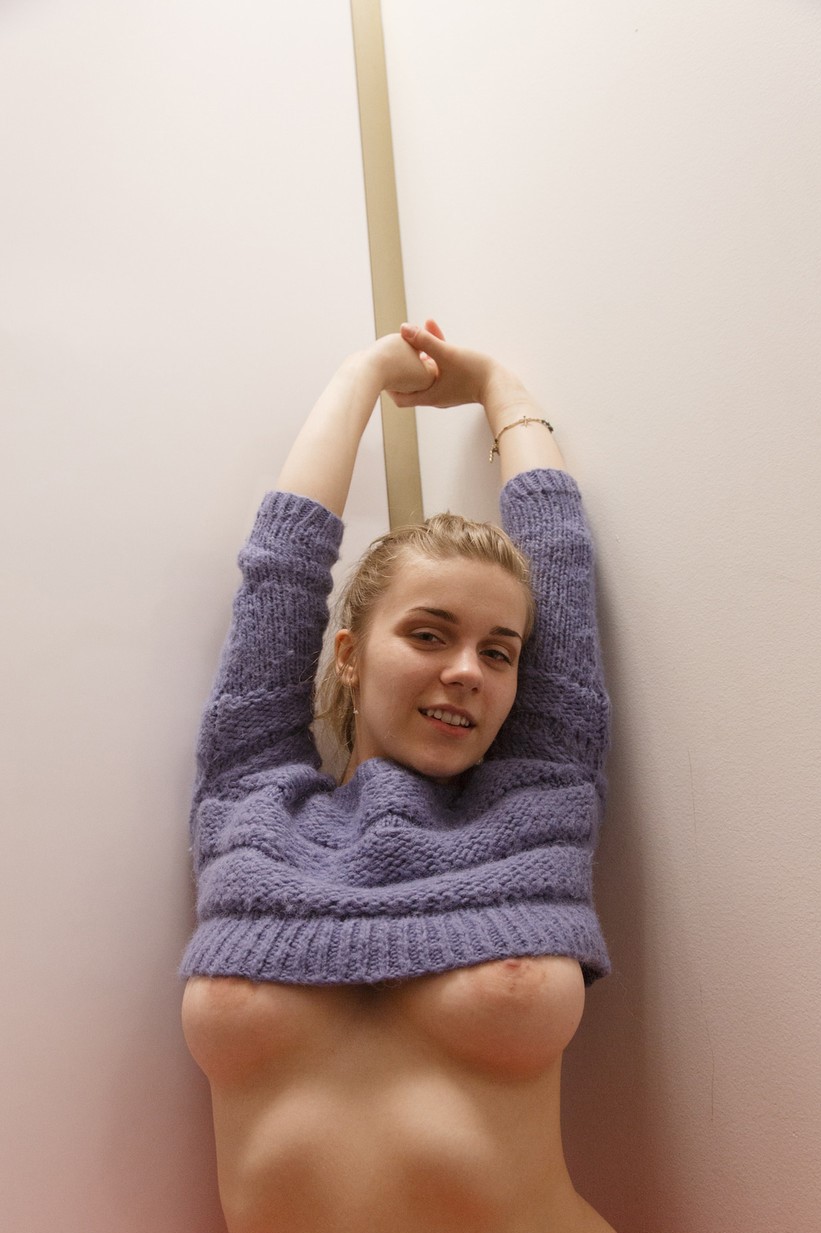 Игривая тинка Натали Остин развлекается на публике и показывает свои формы