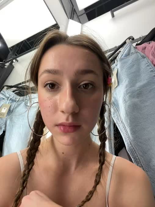 девушка раздевается в примерочной магазина и мастурбирует на камеру