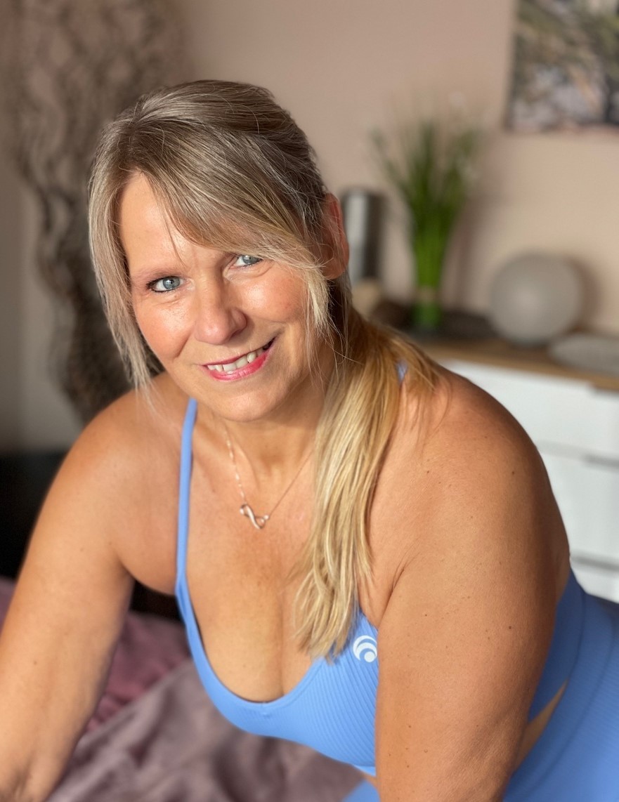 Подтянутая женщина средних лет щеголяет верблюжьей лапкой, прежде чем показать свои сиськи и киску