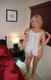 Зрелая блондинка, демонстрирует на своем теле эротическое белье.
