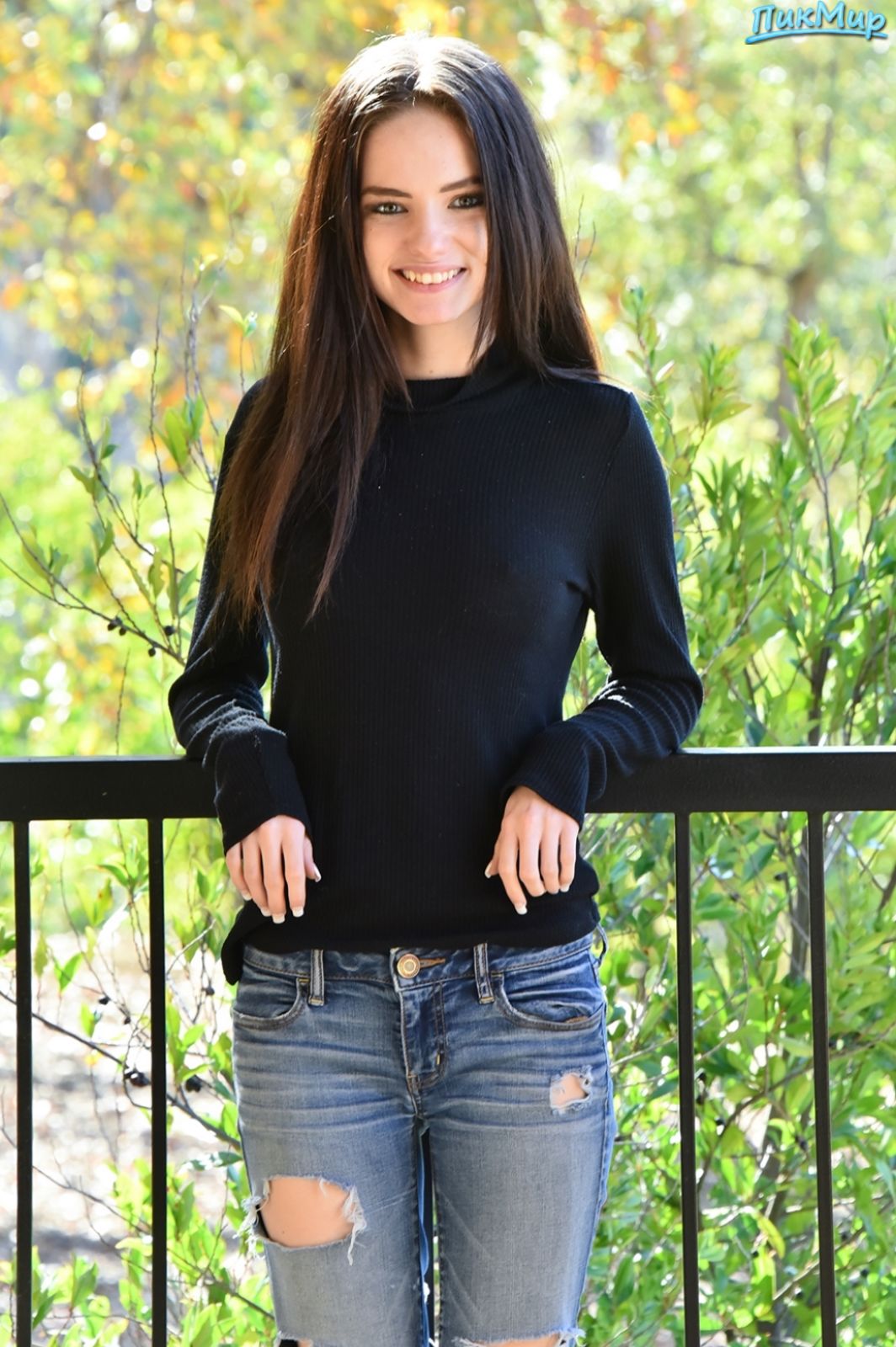 Нежные сисечки и очаровательная вульвочка у этой деточки в рваных джинсах!
