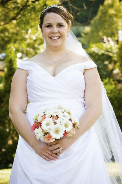 Декольте у свадебного платья удобное. Я бы присунул ей в груди.