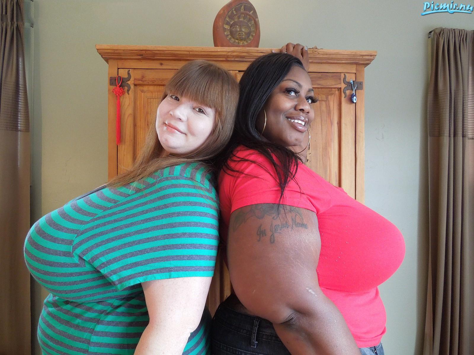 Фотосет для любителей очень большой груди. Три большегрудые модели собрались вместе чтоб устроить показательную фотосессию своих огромных отвисших бидонов.