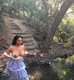 Восточная женщина показывает сочную грудь дома и на природе