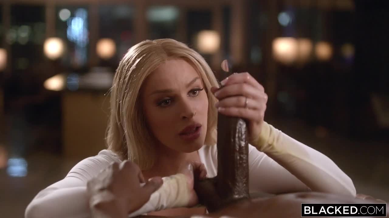 Улётная блондинка трахается с чернышом. А поскольку дрын у него здоровый, потребовалась дополнительная смазка.