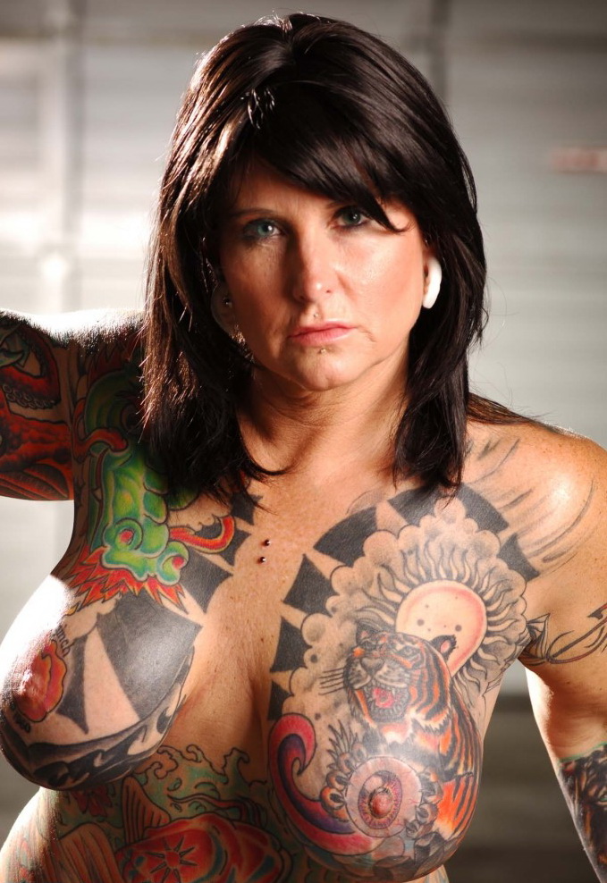 Множественное туту на теле женщины с весьма достойными формами только украсили её и привлекли к её телу повышенное внимание.