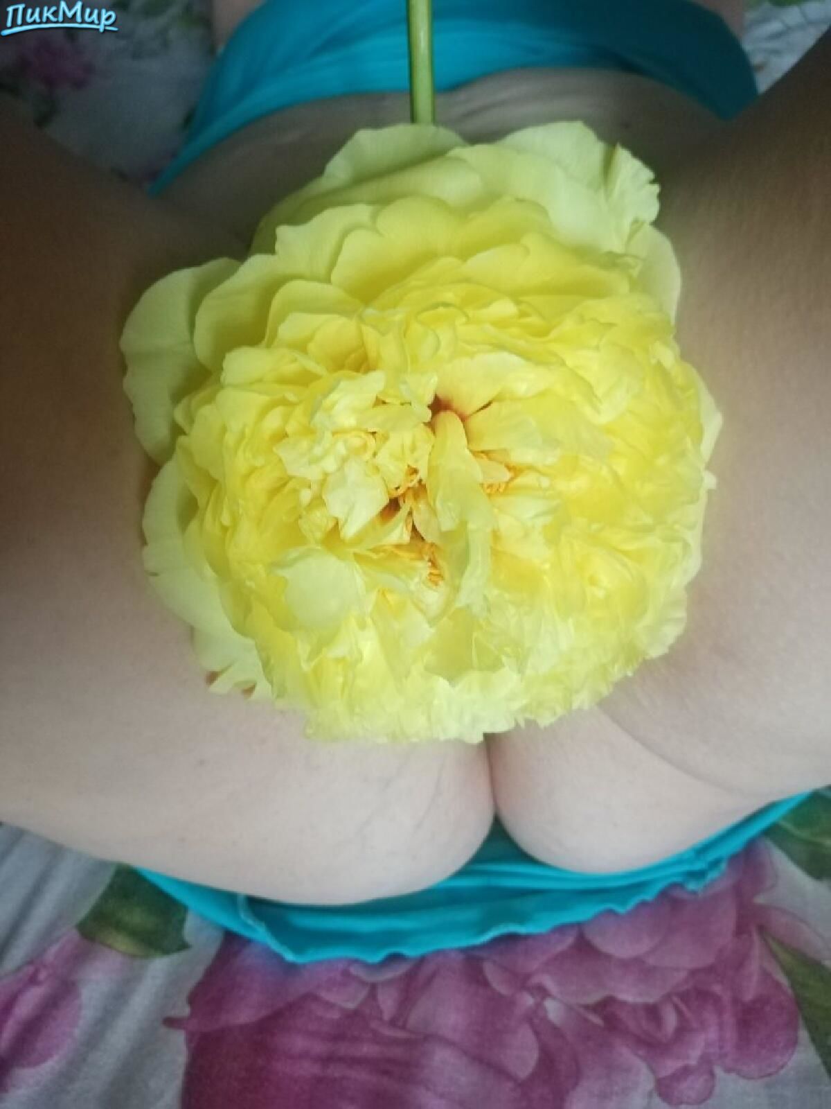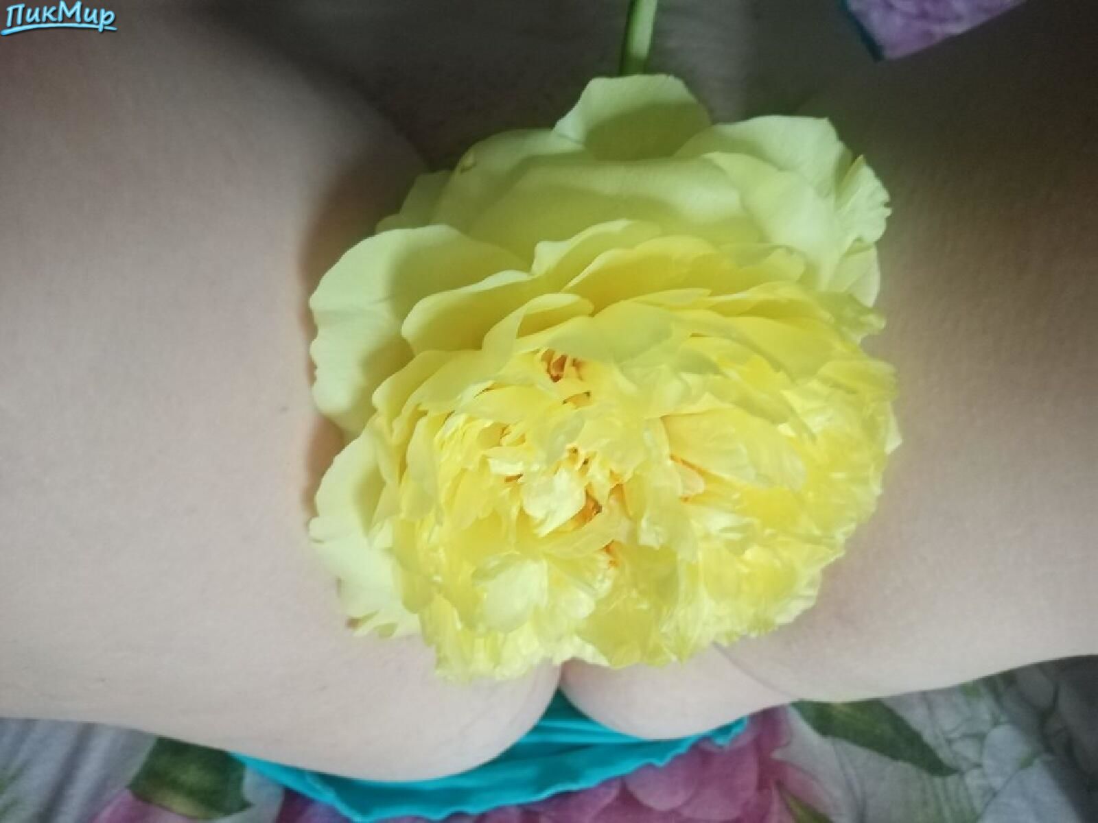 Красивый цветок прикрывает её аппетитную пиздёнку!