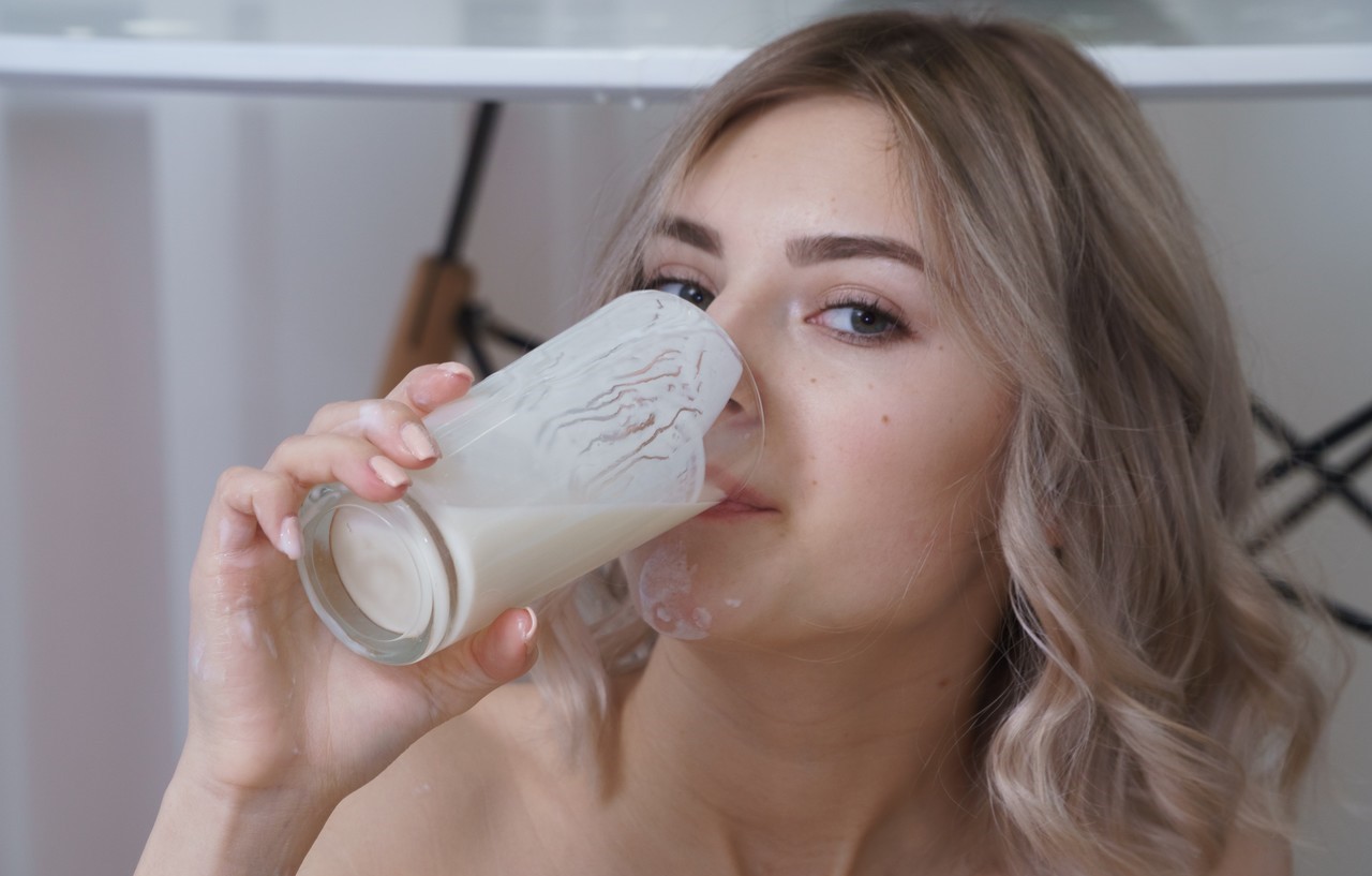 Очень сексуально выглядит обнажённая Ева молоком обливающаяся!