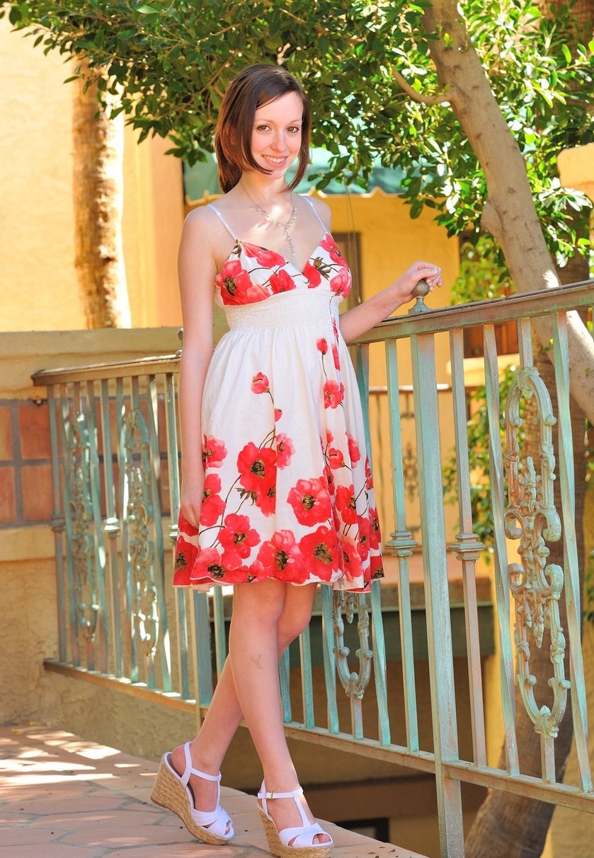 Мило развлекается такая симпатичная девушка в красивом платье .