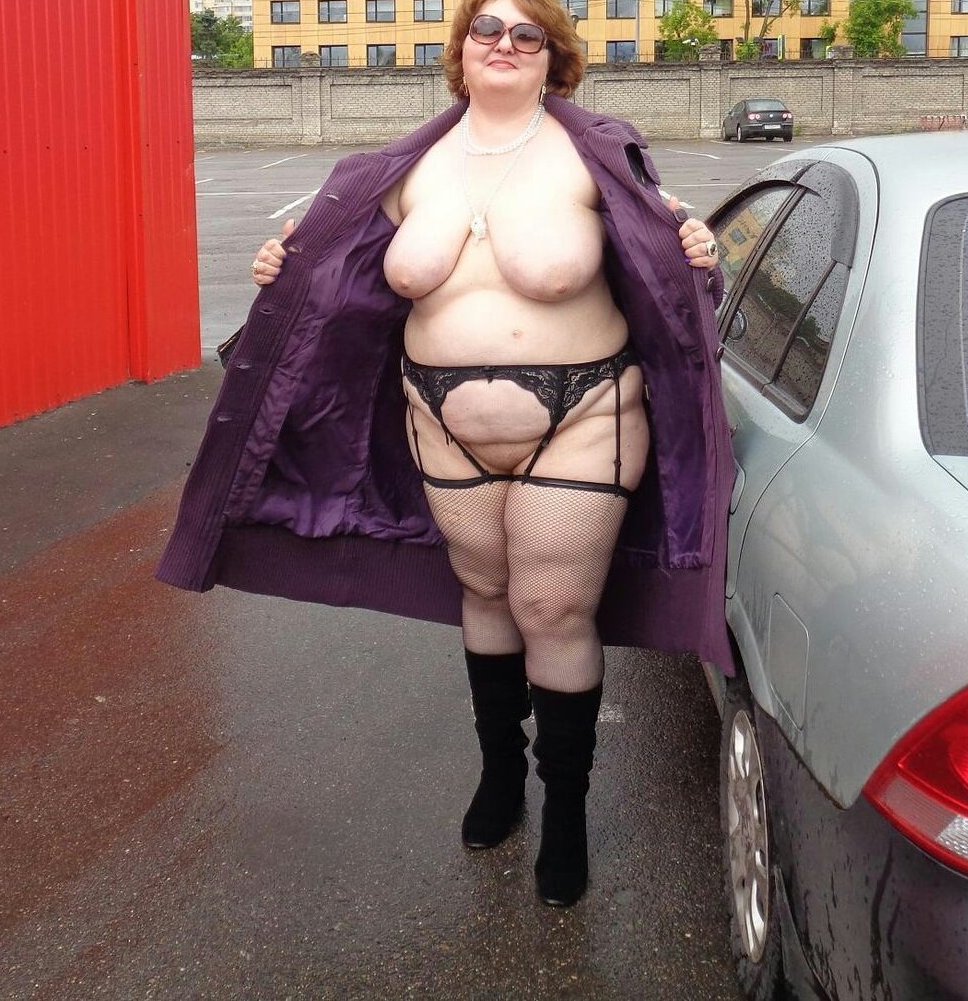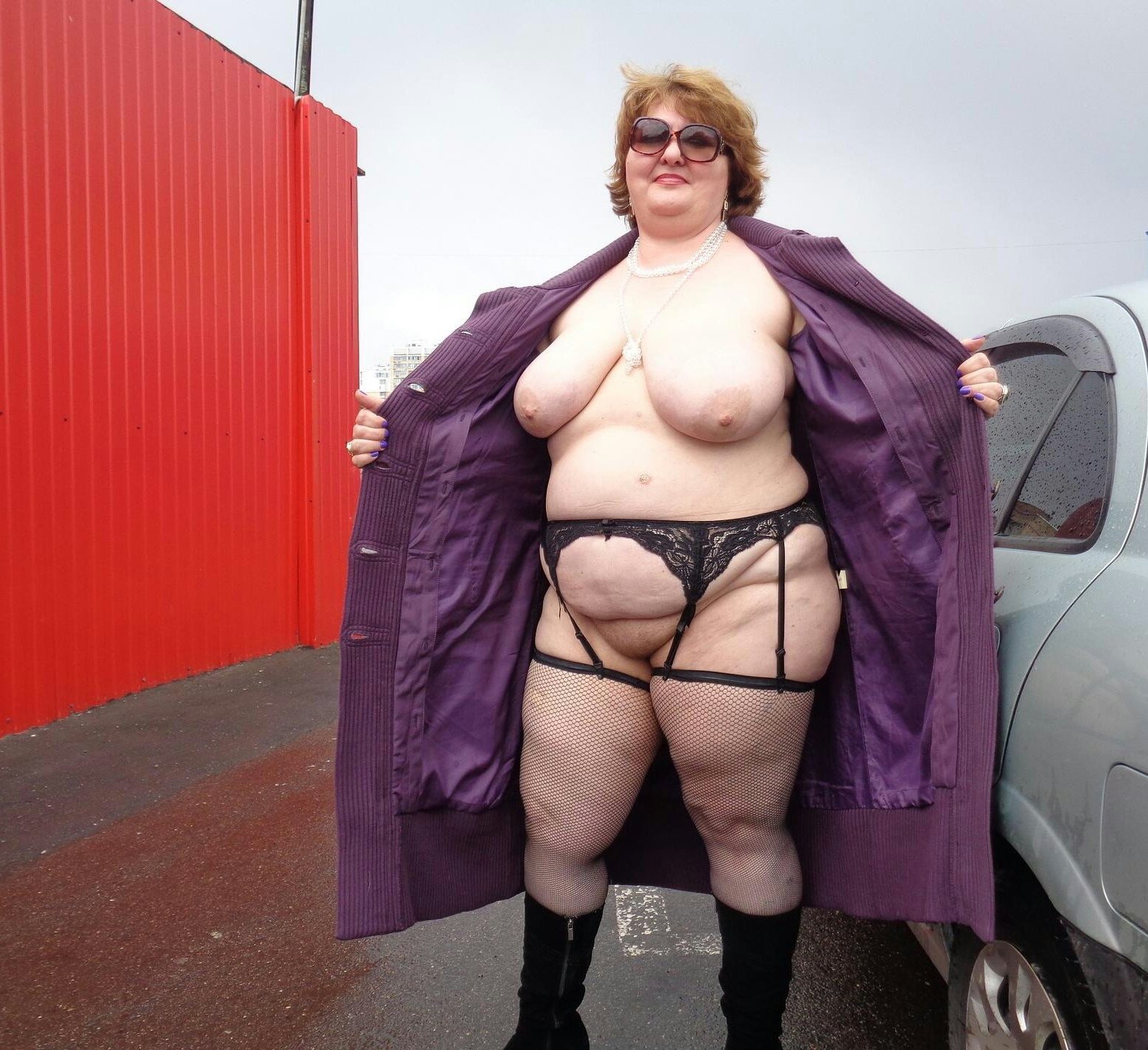 Зрелая пышная дама любит погулять голышом и запечатлеть все на камеру