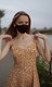Девушка в маске и платье горчичного цвета катается по городу на велосипеде показывая красивые места.