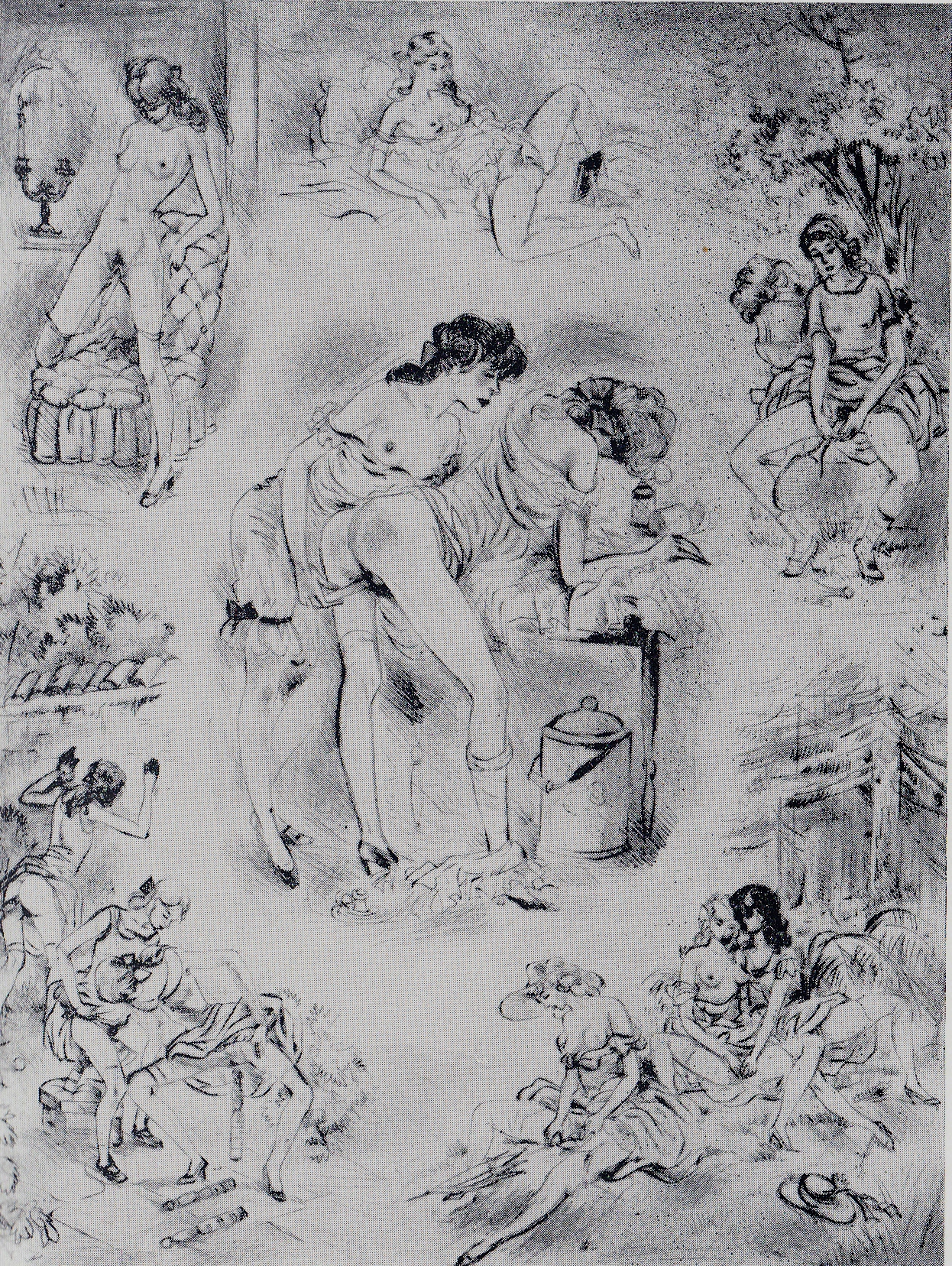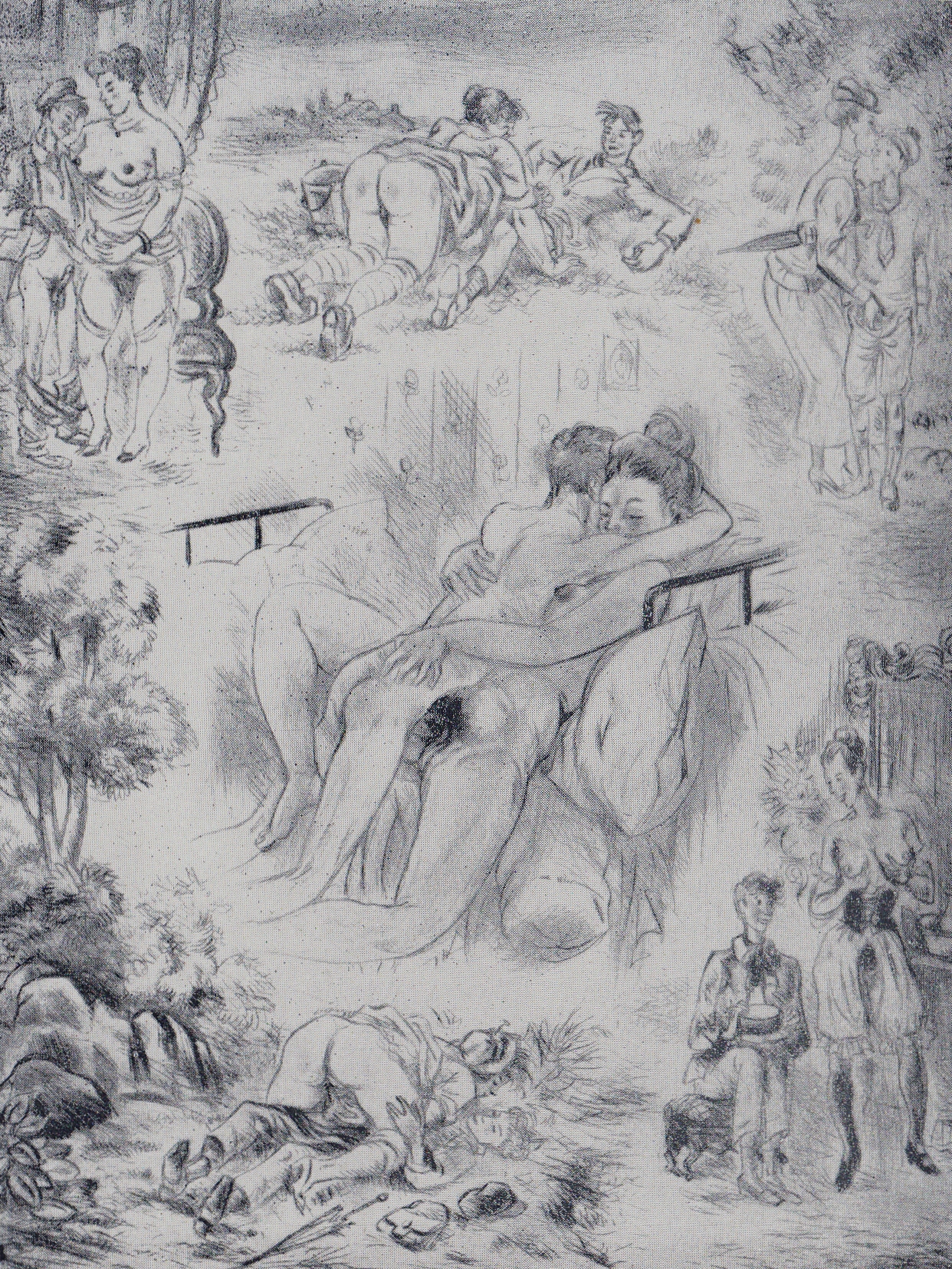 Планшеты со второго подпольного издания из цикла «Романтические симфонии» иллюстрированные французским художником Андре Колло (1897-1976) известным смелыми иллюстрациями к лёгким эротическим романам.