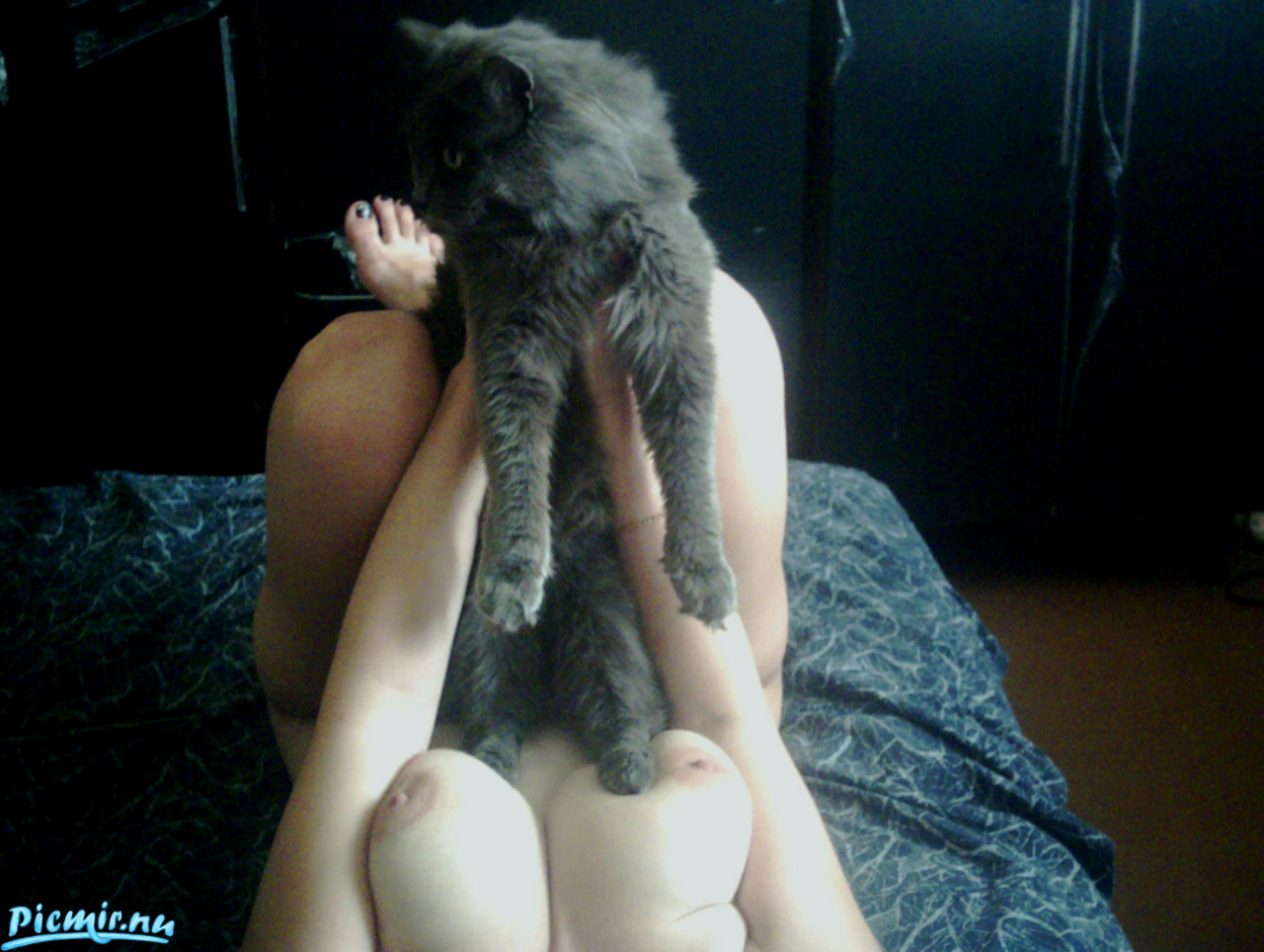 Девочки с открытой киской,в присудствии своих домашних любимчиков_кошек.