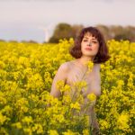 хорошенькая и молодая. только как она на таких каблуках в поле забрела)