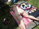 зрелая дама принимает загар
