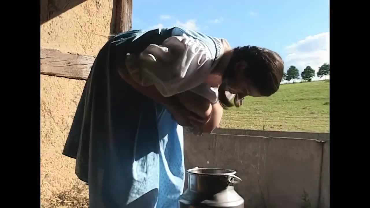 У Милены красивая огромная грудь. Они полны молока, поэтому она работает на молочной ферме.