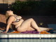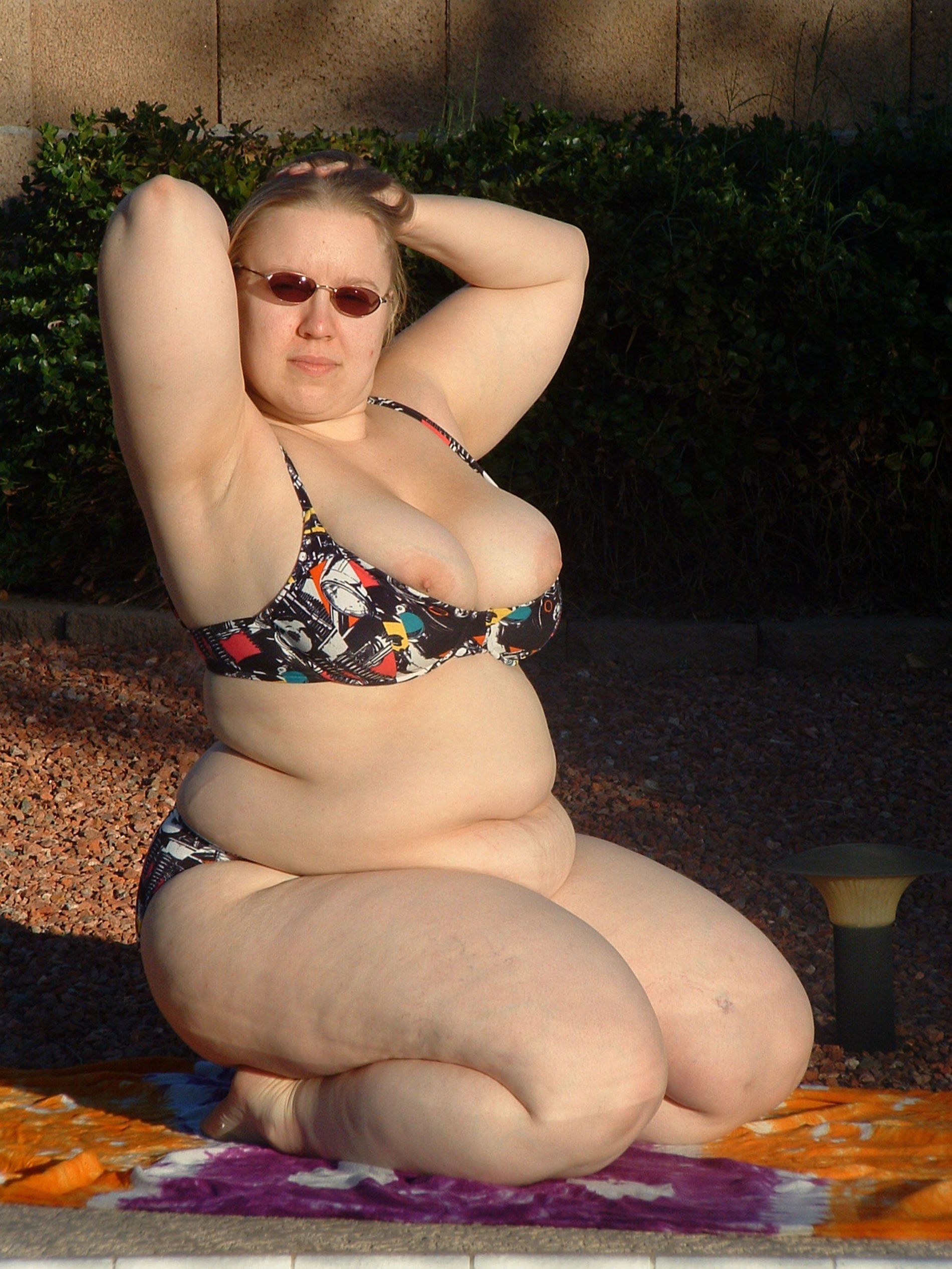 Полненькая девушка ходила купаться и загорать, но костюм казался слишком тесным.