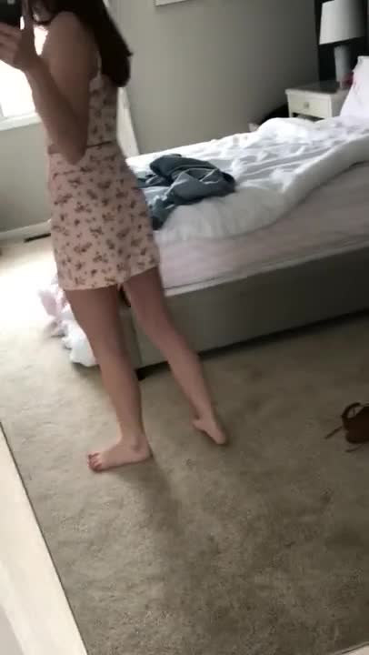 Примерка нового платья на голое тело явно возбудила эту стройную девушку!