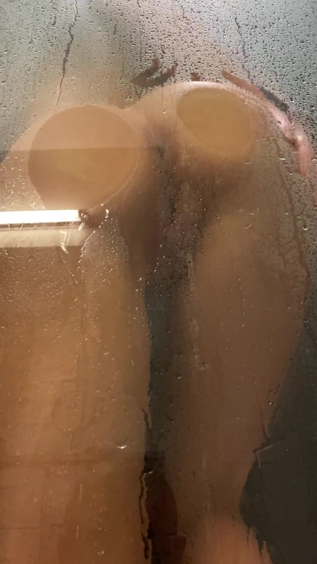 Девушка сняла на видео как прислоняется к прозрачной стене в душевой