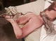 сексуальная дамочка позирует обнажённой эротично накидывая на разные части тела шёлковый шарф