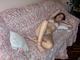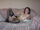 Брюнетка, и в чулках, и просто обнаженная позирует на диване