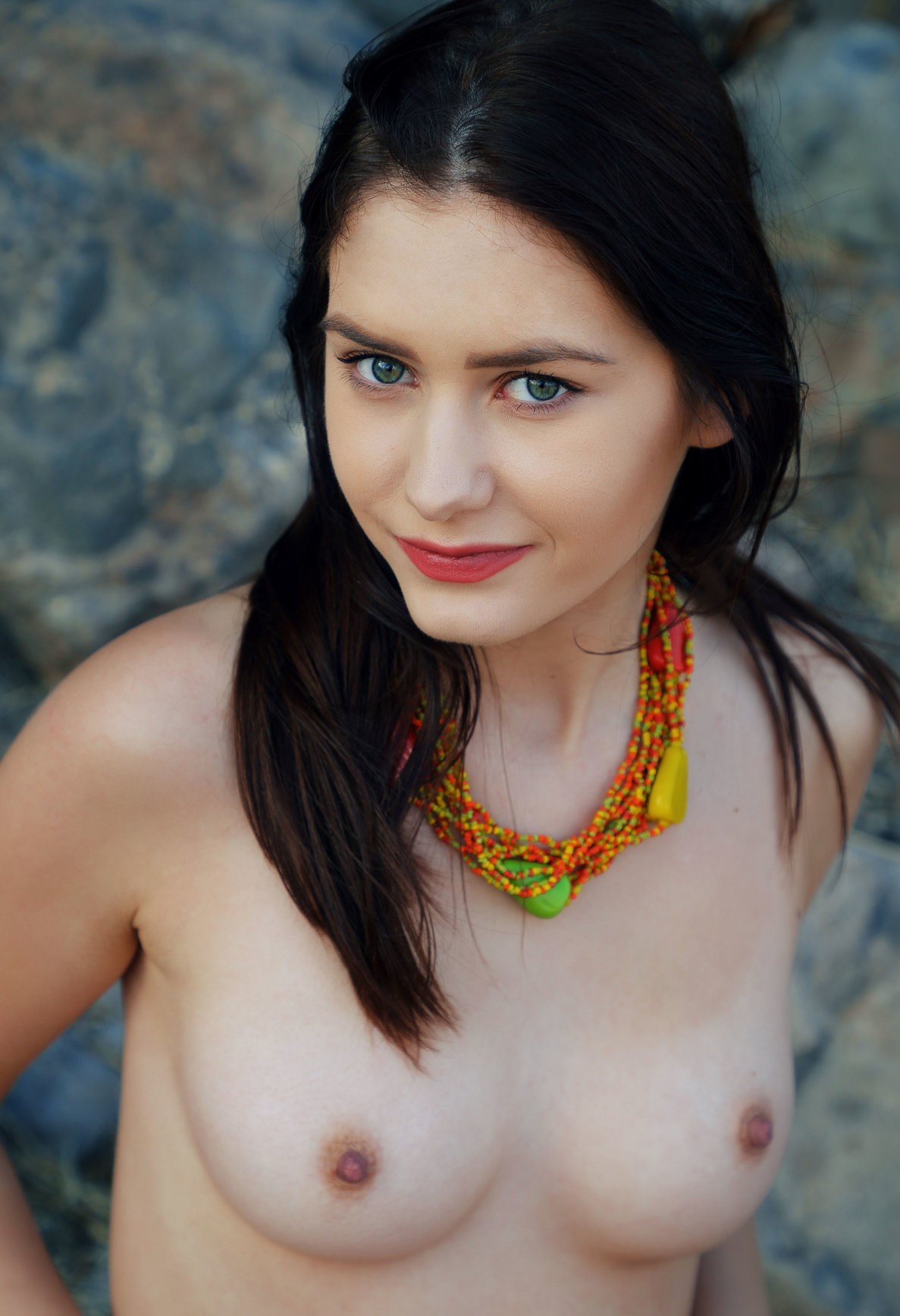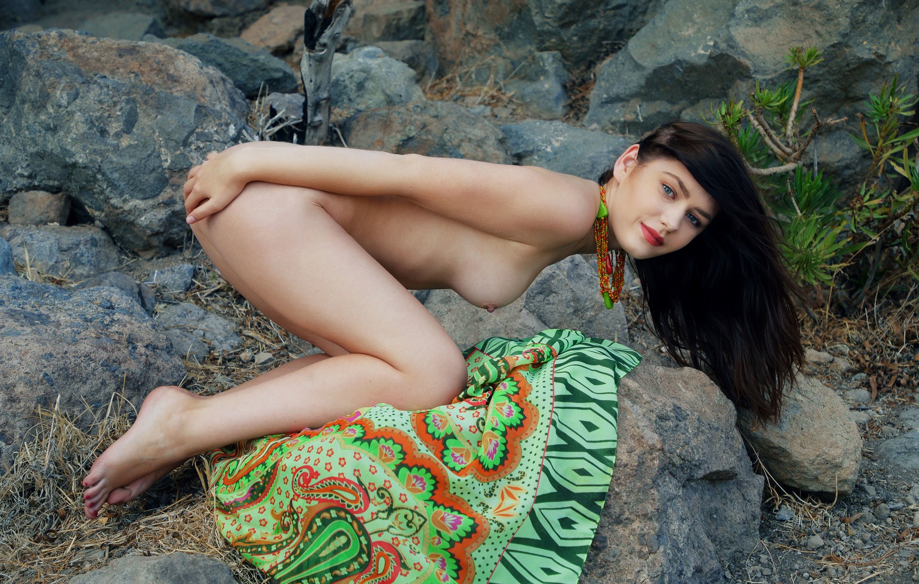 Симпатичная крошка Лана раскрывает свои сексуальные формы на открытом воздухе на скалах