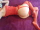 позирует в красном кружевном эротическои белье показывая свои прелести