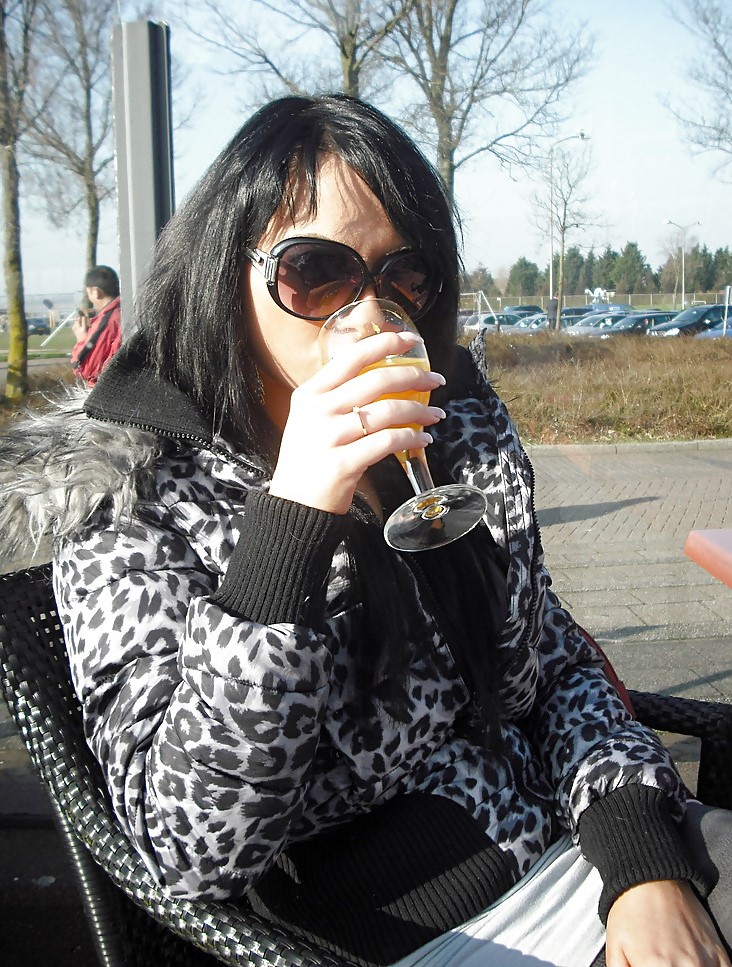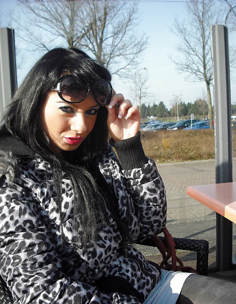 Очень аппетитно позирует на улице похотливая брюнетка Синди!